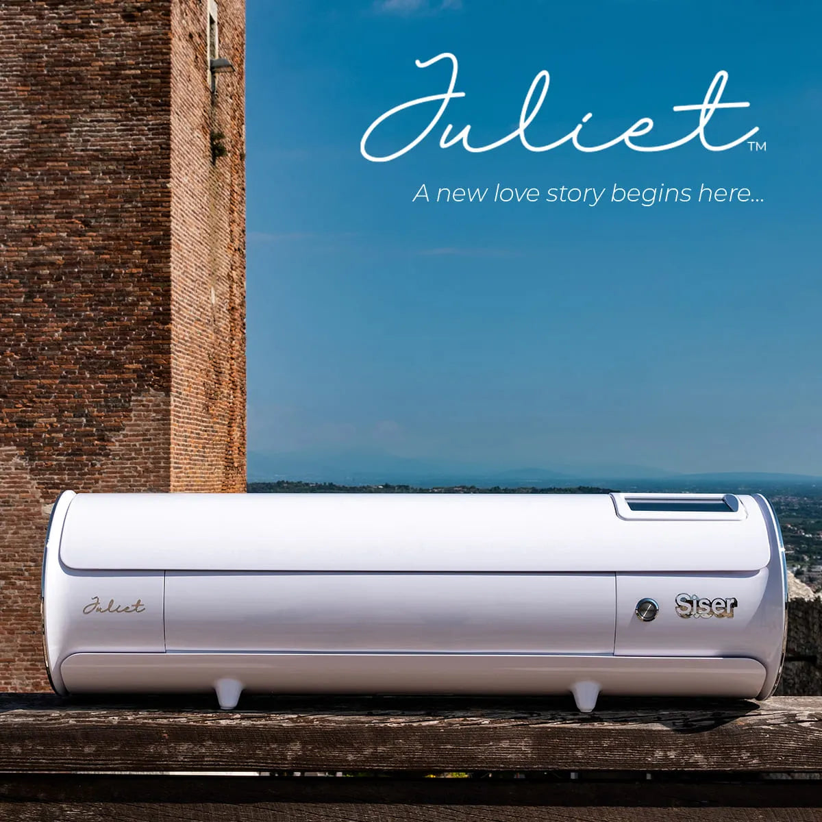 Juliet™ is a high definition cutting machine capable of cutting the finest details in a variety of materials. Juliet is designed for all Siser® heat transfer vinyl and EasyPSV® decal vinyl via the pre installed cut settings, but works superbly with other materials such as cardstock, stickers, craft foam and much more. Cut materials up to 12″ wide using the included cutting mat… or go matless and cut longer rolls using the custom roll feeder (arriving soon). Juliet gives you the freedom to create on your terms and with the materials you’re already familiar with and use on a daily basis. Say goodbye to loud motors and horrible grinding noises that some cutters produce, Juliet is quiet. Perfect for cutting while watching your favorite shows or when the kiddos are fast asleep!